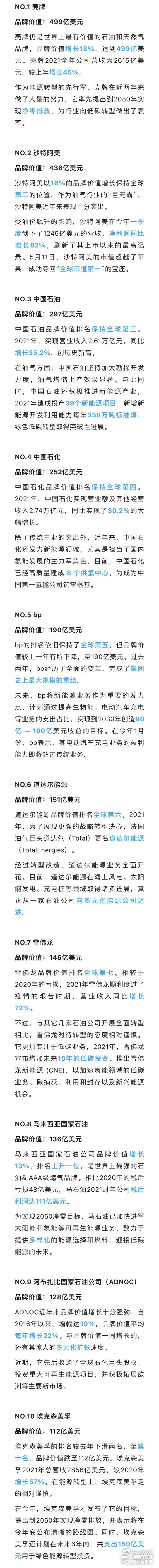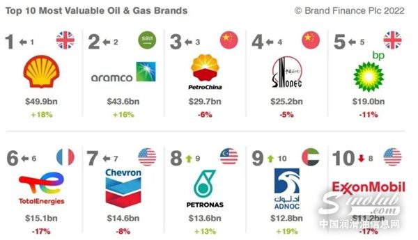 2022全球油气公司品牌价值榜出炉!壳牌、沙特阿美、中石油位居前三!