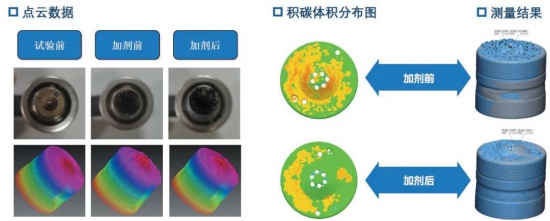 值得一提的是,标准起草团队新开发的检测项目和检测能力较之以前都有较大程度的更新,新方法更实用,也充分满足了行业减污降碳的需求。比如,标准提出了自主研发、基于光学三维轮廓测量仪的喷嘴积碳快速检测方法,对喷油器积碳前后的扫描数据进行对比拟合,得到积碳前后喷嘴的体积数据、三维图像及积碳体积分布图,在喷嘴表面积碳不被破坏的情况下进行3D扫描,最大程度地保证喷油器喷嘴表面积碳的完整性,突破了传统物理剥离表征喷嘴积碳方法所带来的测试精度不高等局限性。