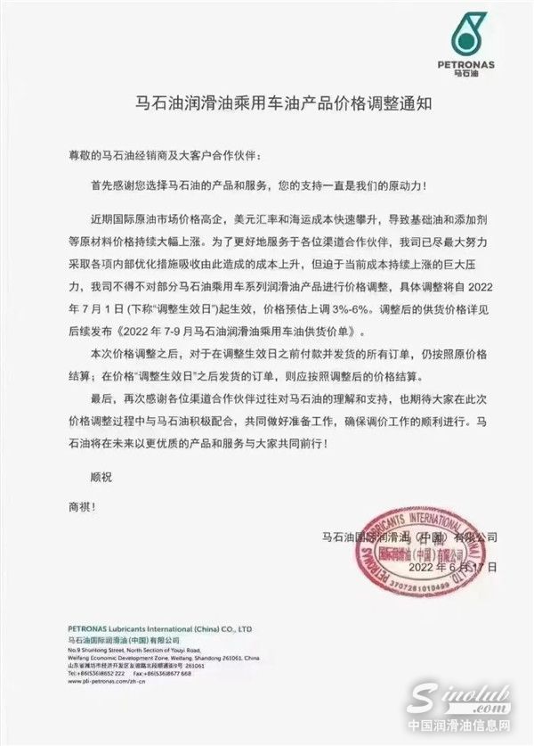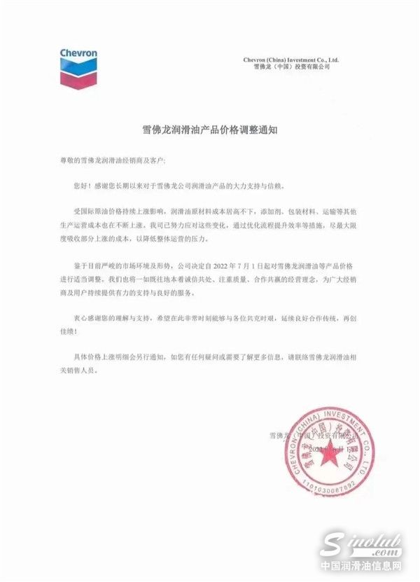 更多资讯,欢迎扫描上方二维码关注中国润滑油信息网微信公众号(sinolub)