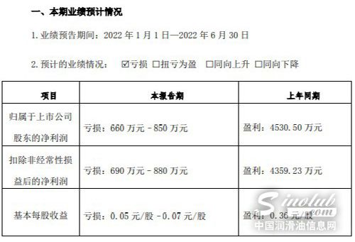 受润滑油业务物流受阻等因素影响,中晟高科2022年上半年预计亏损660万-850万元