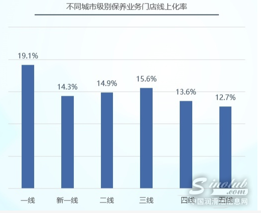 根据《2021年中国汽车后市场维保行业润滑油品类白皮书》:一线城市的保养业务线上化率最高达19%,二三线城市在15%左右,四五线城市相对较低,高端民族润滑油产品的渠道拓展仍存在很大空间。