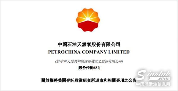 中国石油天然气股份有限公司(「公司」)宣布,公司已于 2022年8月12日(美国东部时间)通知纽约证券交易所(「纽交所」),公司将根据一九三四年美国证券交易法(经修订)(「证券交易法」)等相关规定,申请自愿将其美国存托股份(「存托股」)从纽交所退市。