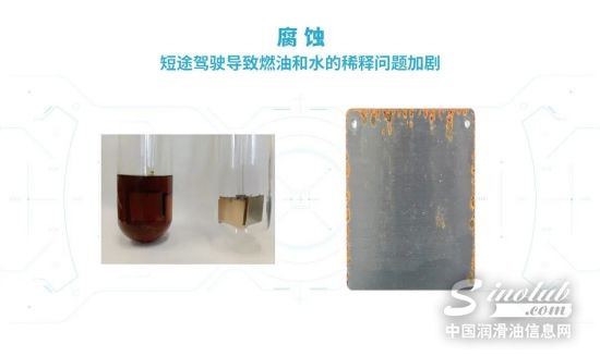城市驾驶道路堵塞致使车辆频繁启停和短距离驾驶增加,会导致发动机工作在一个较低的温度区间。低温工况导致发动机油中燃油和水的稀释问题加剧,带来可能的腐蚀问题。