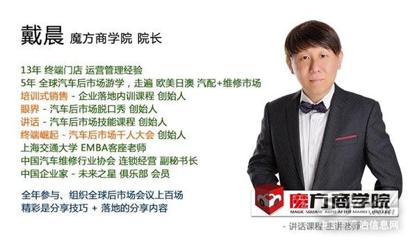 中国汽车后市场快速发展,人才快速成长,各种活动迅速爆发。在汽车后市场面临改革,升级的历史阶段中,优秀的企业家必然需要协会如何以最高效率执行企业的运转。而在当今全球社会中,“讲话”是每一个企业家都需要面临的问题,我们70%的时间都用在沟通,分享,会议,演讲,如何更有效的达成沟通结果,如果让自己更有魅力,如何能在芸芸众生的行业中脱颖而出……