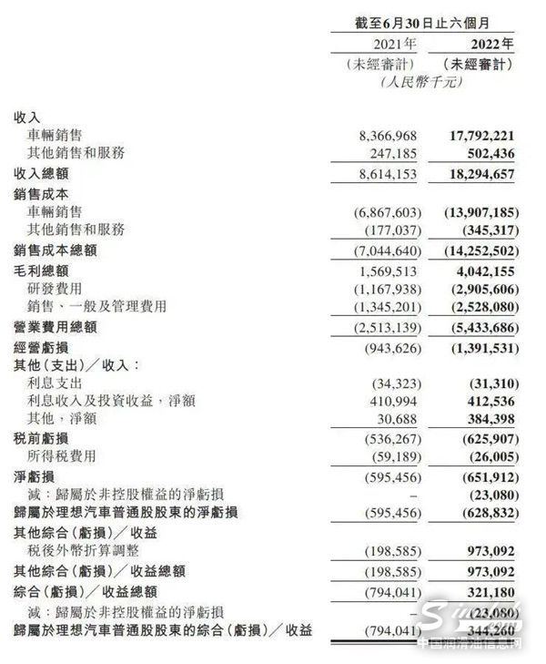 理想汽车 财报收益:亏损额翻番
