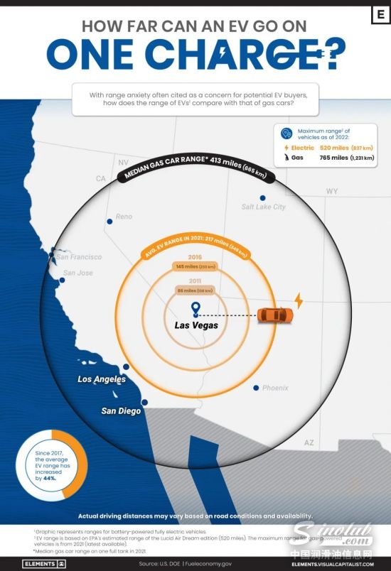 但是,与汽油动力汽车相比,电动汽车续航里程仍然不足。例如,2021年美国汽油车的中位数行驶里程(一个满油箱)约为664公里,几乎是电动汽车平均行驶里程的两倍。