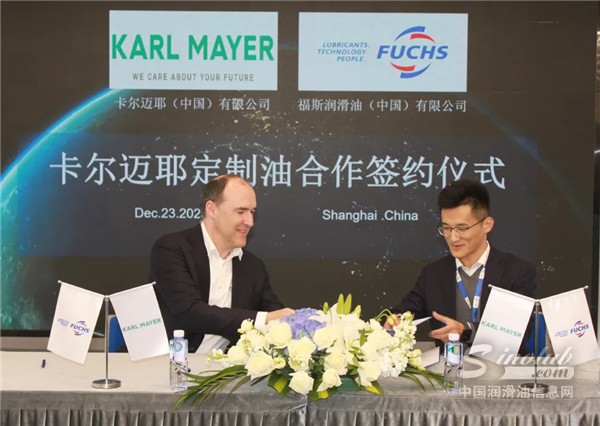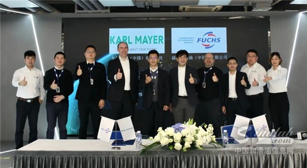 卡尔迈耶中国总经理孔震、设备解决方案总监Armin Alber、零备件销售部经理徐锋和设备解决方案部经理邵波,以及福斯中国首席技术官Kris Van Gasse、工业油&特种油销售副总裁刘靖奎、产品高级经理林慧峰、纺织行业业务发展经理杜静仪等出席签约仪式,共同展望未来更紧密的业务合作。