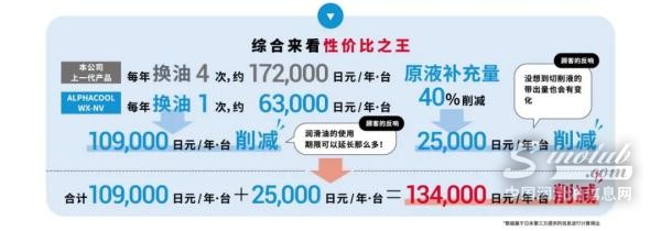 √ 在相同加工场景实验中,相比上一代产品使用量、换油频次显著减少,使用寿命显著延长,更具高性价比。
