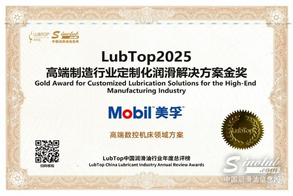 埃克森美孚中国荣膺LubTop2025 “高端制造行业定制化润滑解决方案金奖”