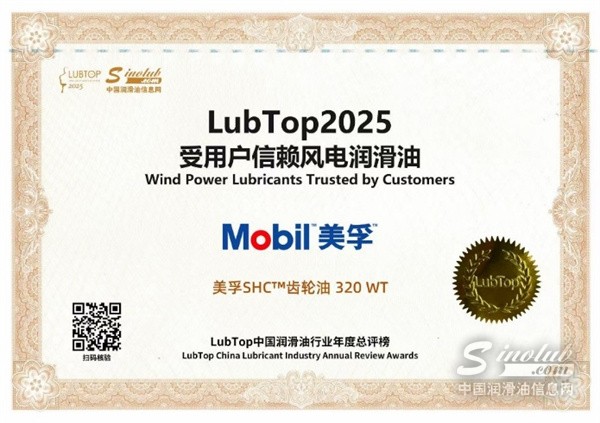 埃克森美孚中国再获LubTop2025 “受用户信赖风电润滑油”