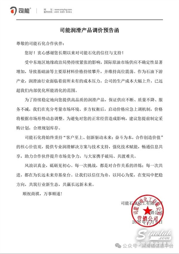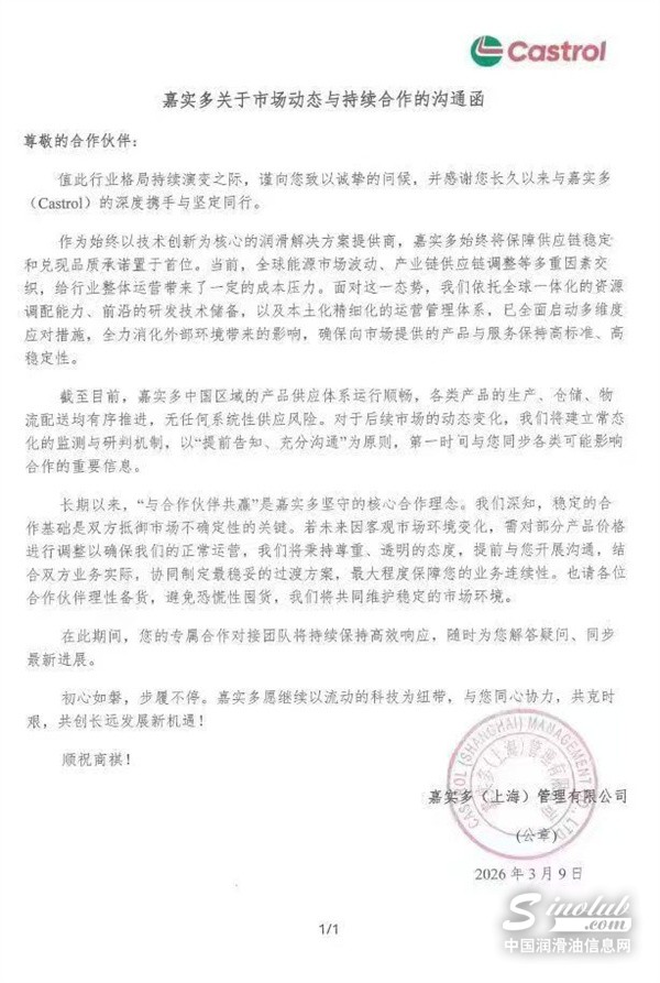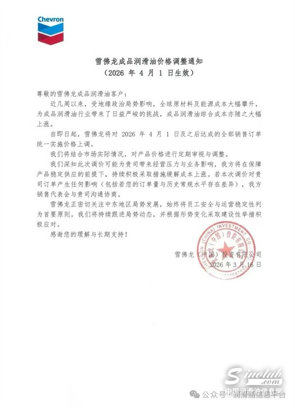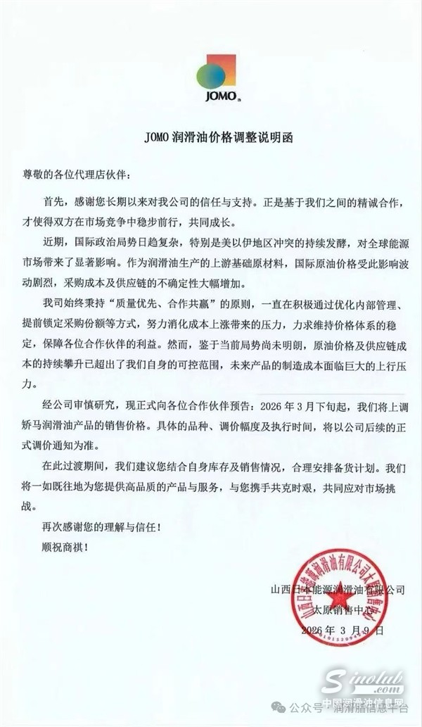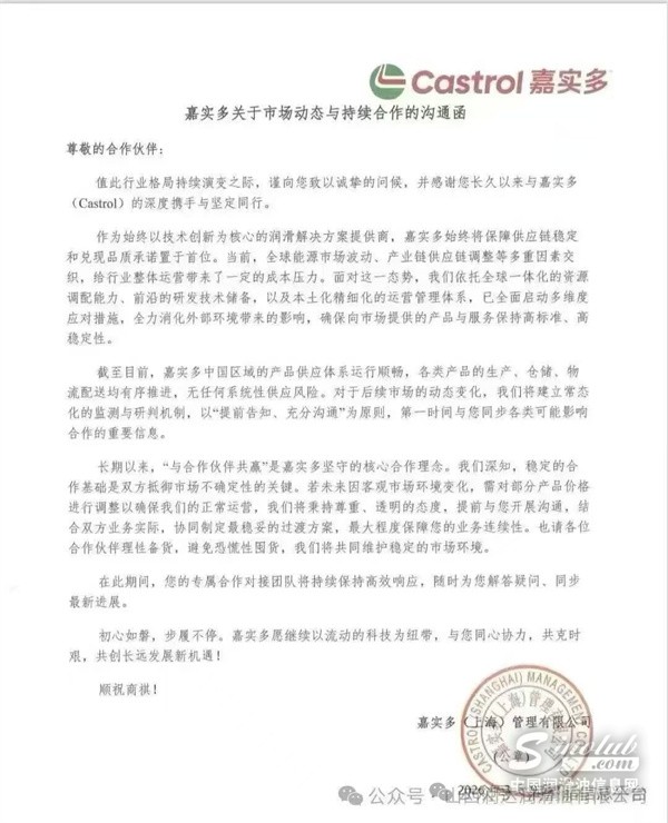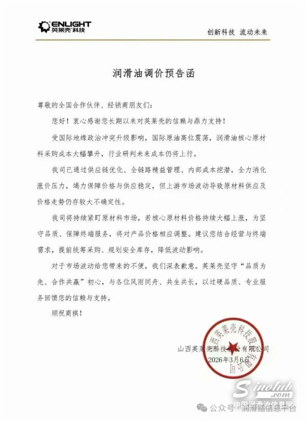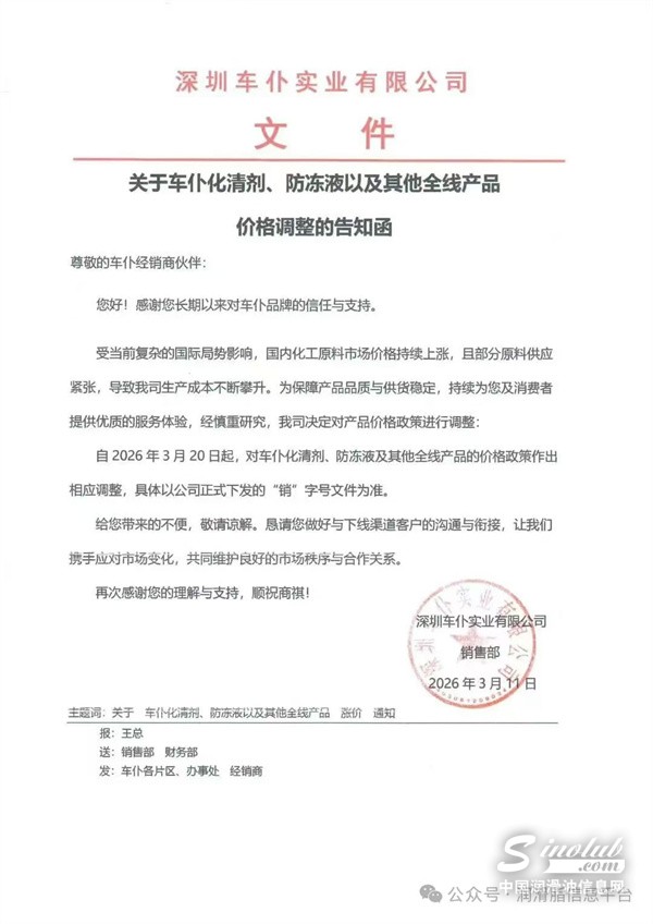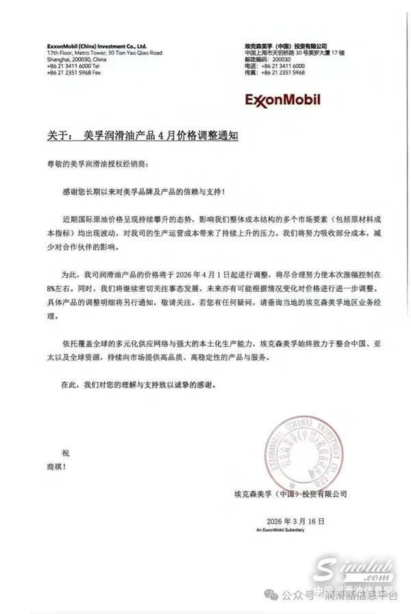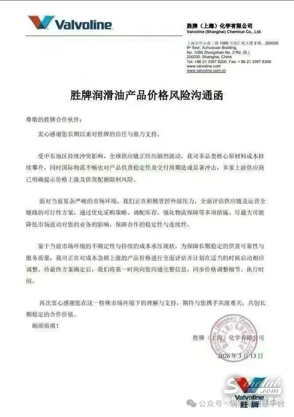 截至目前我核实到的公开资料,不能确认美孚、壳牌、嘉实多等都已公开发布正式涨价函。更稳妥的说法是:行业涨价预期已明显升温,部分企业已明确调价或发出价格预警。