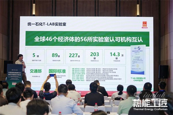 2026年4月17日,“中国国际数据中心液冷关键技术年会”在深圳召开,统一石化获颁“年度优秀液冷技术灯塔企业奖”。现场,基于“统一绿色算力液冷产研示范基地”系统性实践经验,统一石化技术开发高级经理李根分享《数据中心液冷工质全维度测试与验证》。