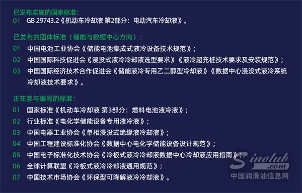 技术领先不仅体现在实验室,更体现在标准制定。统一绿色液冷算力产研示范基旨在为全行业提供新材料验证的公共平台,弥补从实验室到实际部署之间的安全鸿沟。当前,统一石化积极参与数据中心储能及新能源液冷的标准编制,目前已参与起草多项重要标准: