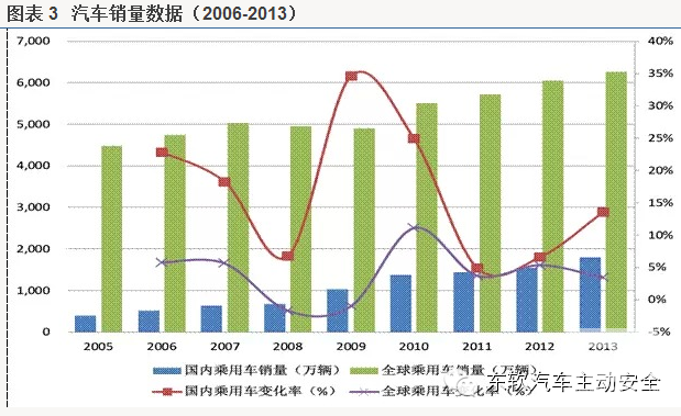 从移动通信发展的角度,随着2G、3G及4G的逐步发展,移动智能终端经过了快速的增长阶段,同样具备移动特点的汽车明显滞后于手机的发展,我们认为在移动互联网加速渗透下,汽车将是继智能手机后又一个无线设备及业务快速增长的市场,是下一个移动互联的蓝海。目前我国汽车保有量约1.4亿辆。2013年我国汽车产销量分别达到2211.7万辆和2198.4万辆,同比增长14.8%和13.9%,连续五年居世界第一。巨大的汽车市场为车联网的发展提供了坚实的基础。