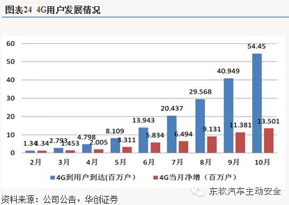 国内4G用户的快速增长,同时运营商也在积极向流量经营进行转型,数据业务收入占比上升明显,汽车将是下一个继移动智能终端之后的联网渗透率较低的广阔市场,运营商在终端管理、呼叫中心、设备管理、计费与CRM方面都有较强的竞争力,在4G流量经营的时代,车联网将是运营商布局重要战场。