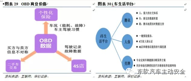 UBI (usage-basedinsurance): 通过对汽车OBD数据的分析,保险公司可以为车主进行定制方案,让车主可以享受最优惠的保险资费,并且在这个程度上,保险公司同样可以获得比以前高的保费利润,是一种双赢的商业模式。这一模式的出现,给国内的车载OBD厂家和保险公司提供了诸多想象的空间。而车险开放和差异化费率政策的开放将会加速这一进程。