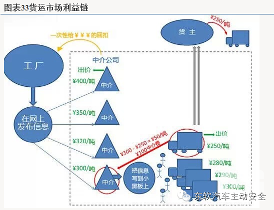 物流配货信息严重不对称蕴含着巨大的机会:从需求层面来看,我们认为货运车辆智能配货需求旺盛,有望成为商务车联网拓展的主要市场,在我国政府批准的货运承运商必须拥有超过 5 辆货车才行。个体经营者如果想作为服务供货商经营业务则必须与一家大型的承运商签订附属协议。我国的运货商往往会前往城市中拥有众多货车停靠的地方去寻找下一趟托运生意。当地的货运代理人则在这些停靠点充当经纪人,为货车司机们提供一系列的服务,将货运信息进公布在停靠点的黑板上,为托运人安排零担货运散货、货物并(拼)箱、货物存储服务,并收取一定的中介费用,在这个链条由于信息不对称,货运司机成为被剥削最严重的环节,对于基于智能配货的商务车联网意味着巨大的商业机会。