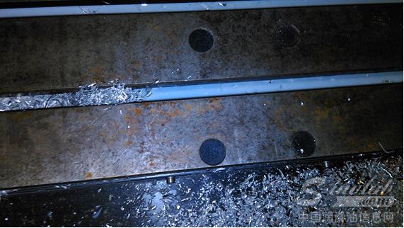导轨经常受到切削液的冲洗和冲刷,如果导轨润滑油的粘附性及防锈性能不佳,将容易发生导轨油流失、乳化现象,从而降低导轨润滑和防锈效果。这时,导轨就如同失去了“保护伞”,导轨会发生摩擦阻力增大、磨损加大、运行不畅的情况,而且在潮湿的环境中更易发生锈蚀,同时,还会引起工件的加工碎屑和外界的灰尘造成导轨的划痕和磨损。在进行现场调查时发现,广州骏和设备上的导轨锈蚀现象严重(图1),这些都是影响导轨的运行效率及加工精度的诱因。